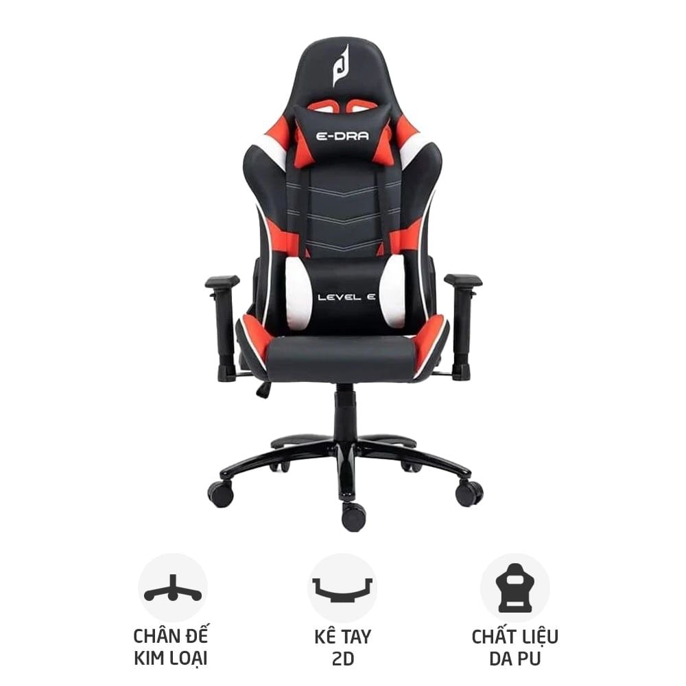 | Tên sản phẩm | GHẾ GAMING E-DRA LEVEL E / CHÂN XOAY EGC229 / MÀU ĐEN ĐỎ . BH 12T |