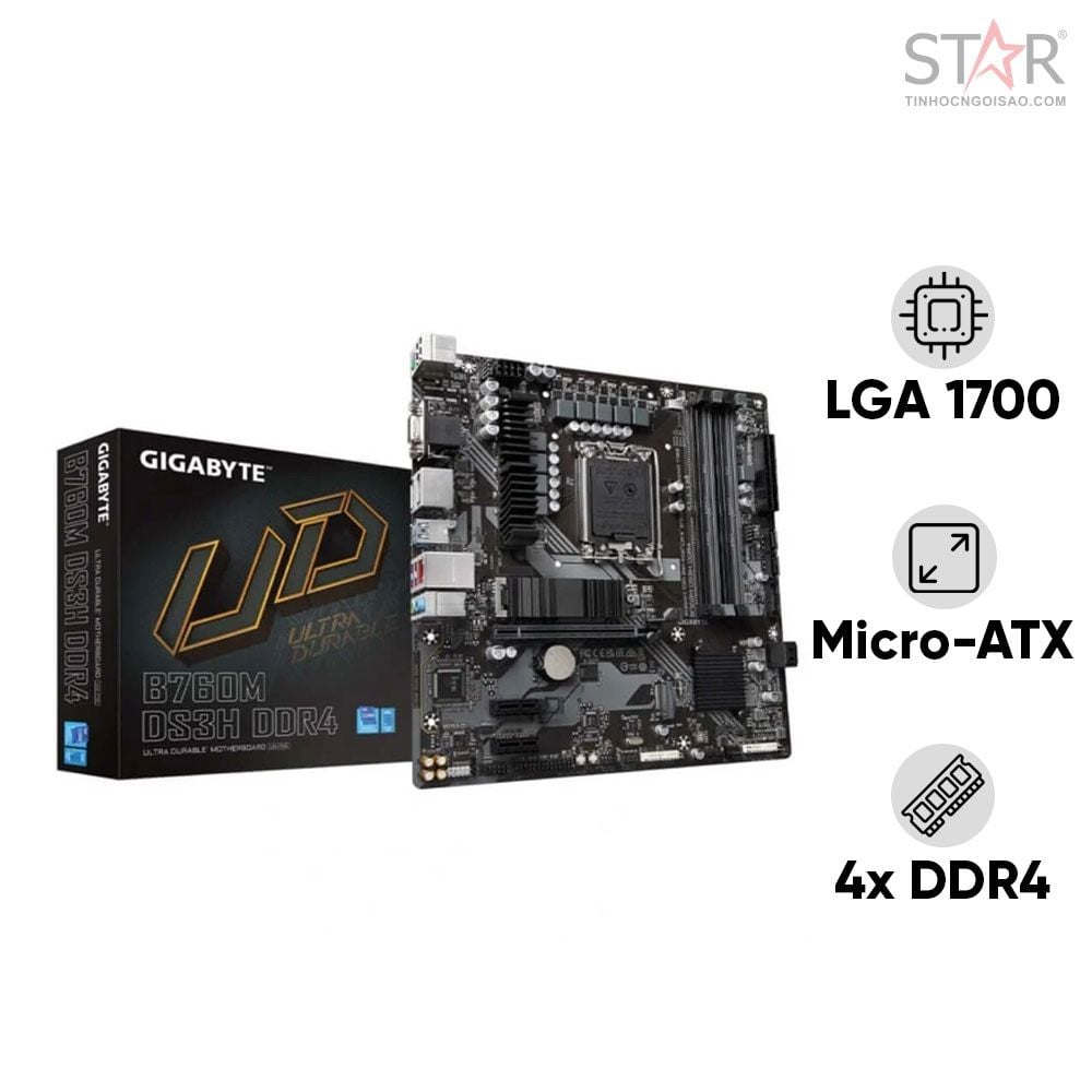 | Tên sản phẩm | MAINBOARD GIGABYTE B760M DS3H DDR4 - BH 36T |