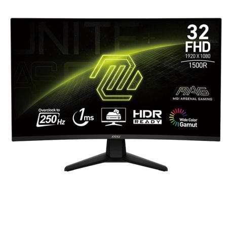 | Tên sản phẩm | Màn hình Gaming Fps Msi Mag32C6X (32"/Fhd/Va/250Hz/1Ms/Hdmi+Dp/Cong) |